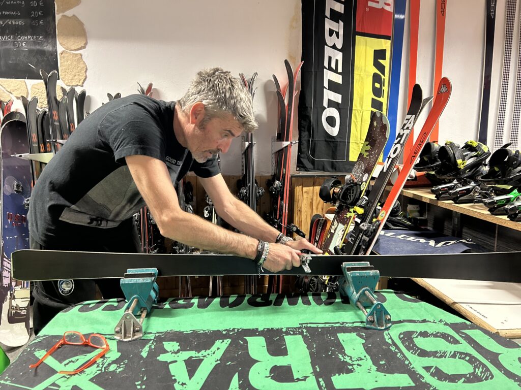 We carry out maintenance operations such as waxing (hot, infrared or base), repair of edges and base (dowelling, grinding) and adjustment or assembly of bindings.